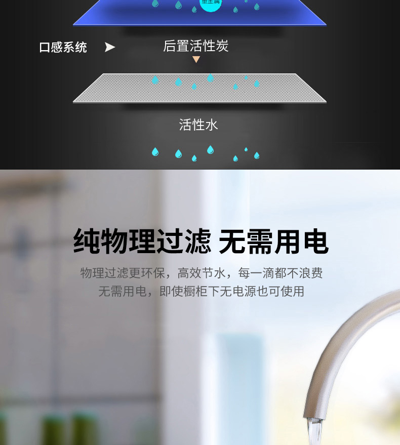 過濾系統(tǒng):初濾系統(tǒng)+吸附系統(tǒng)+直飲系統(tǒng)+超濾系統(tǒng)+能量系統(tǒng)+口感系統(tǒng)