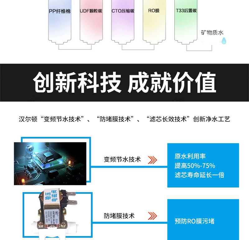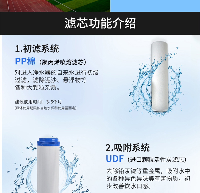 過濾系統(tǒng):初濾系統(tǒng)+吸附系統(tǒng)+直飲系統(tǒng)+反滲透系統(tǒng)+口感系統(tǒng)