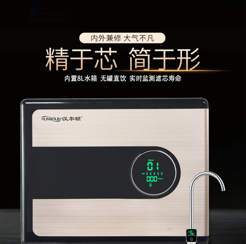 配置:漢爾頓進(jìn)口高配,美國進(jìn)口吸附濾芯、進(jìn)口RO膜、觸控智能水龍頭、銅芯不銹鋼三通球閥.