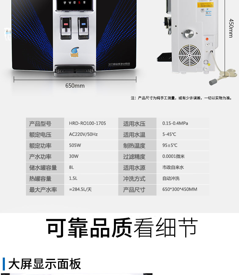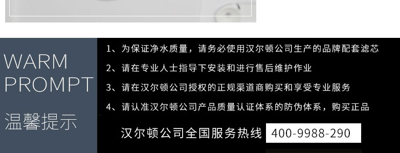 配置:漢爾頓國產(chǎn)標(biāo)配,國產(chǎn)濾芯、 國產(chǎn)PE水管、銅芯不銹鋼三通球閥,內(nèi)置水箱機(jī)械式出水。