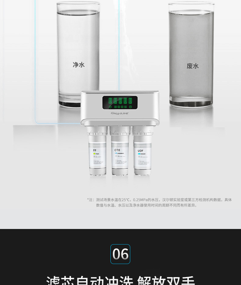 配置:漢爾頓進(jìn)口高配,美國進(jìn)口吸附濾芯、進(jìn)口RO膜、304純不銹鋼拉絲美式3分大彎龍頭、臺(tái)灣CCK牌PE水管、銅芯不銹鋼三通球閥。