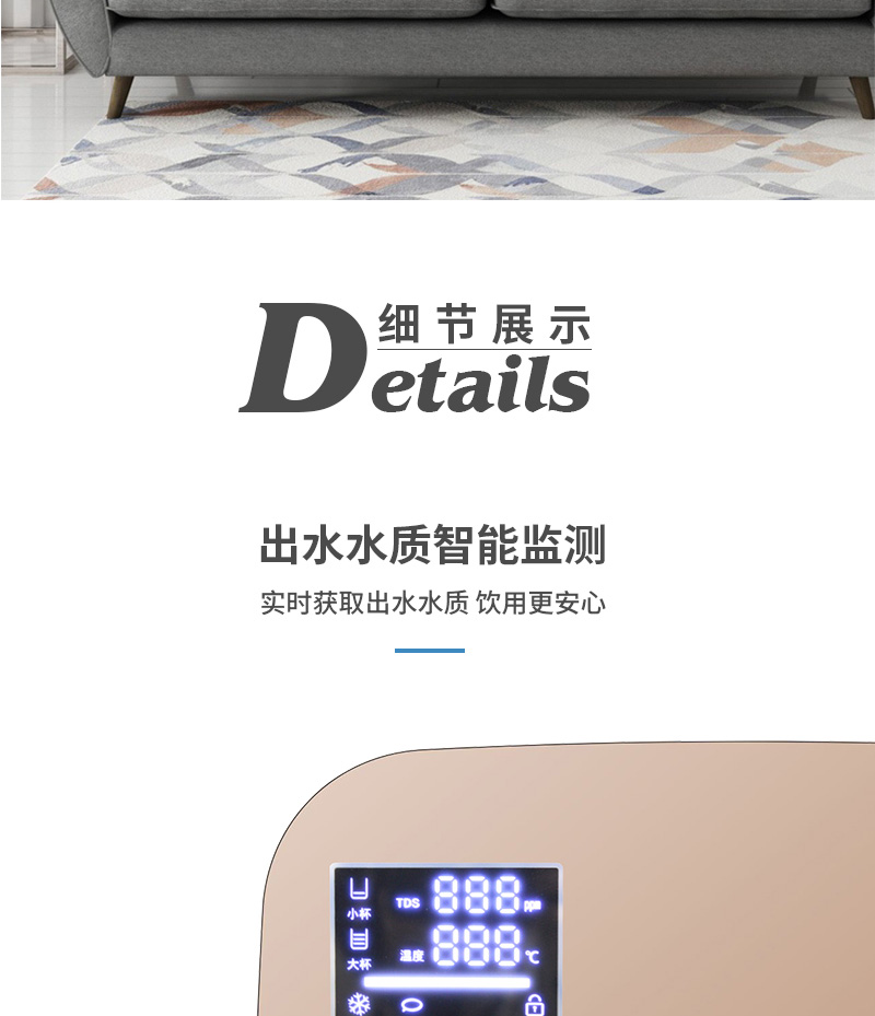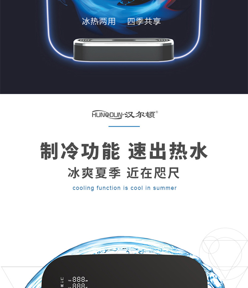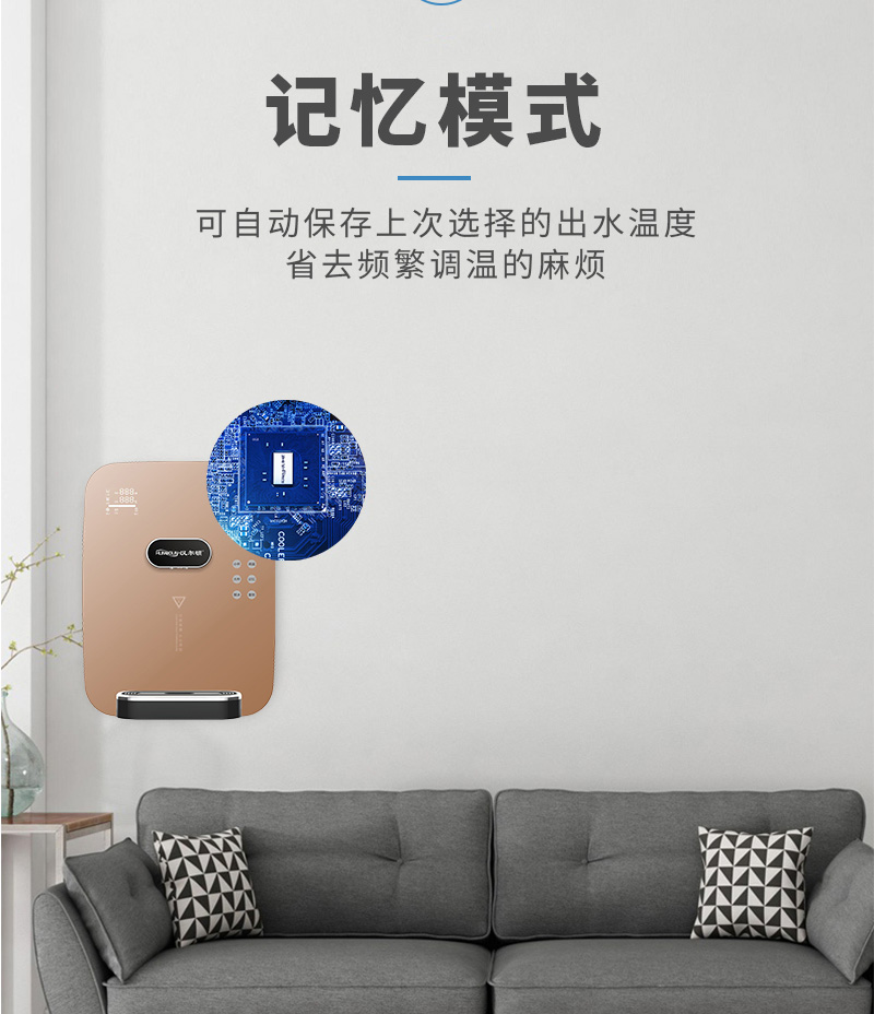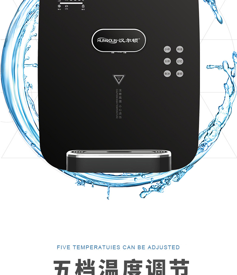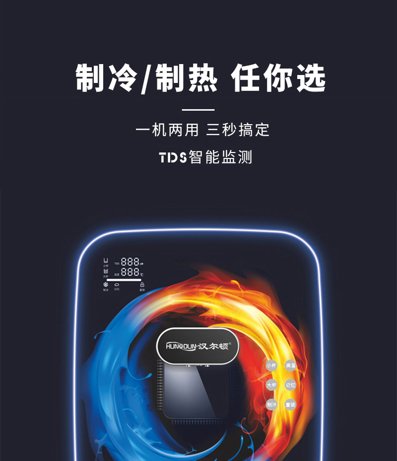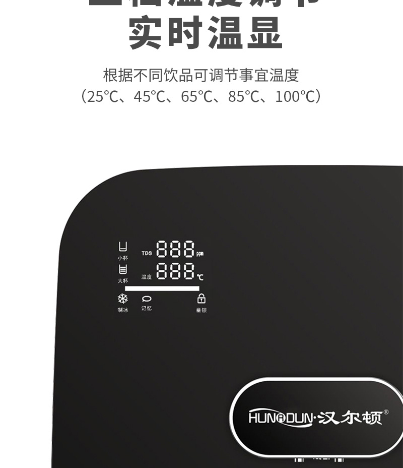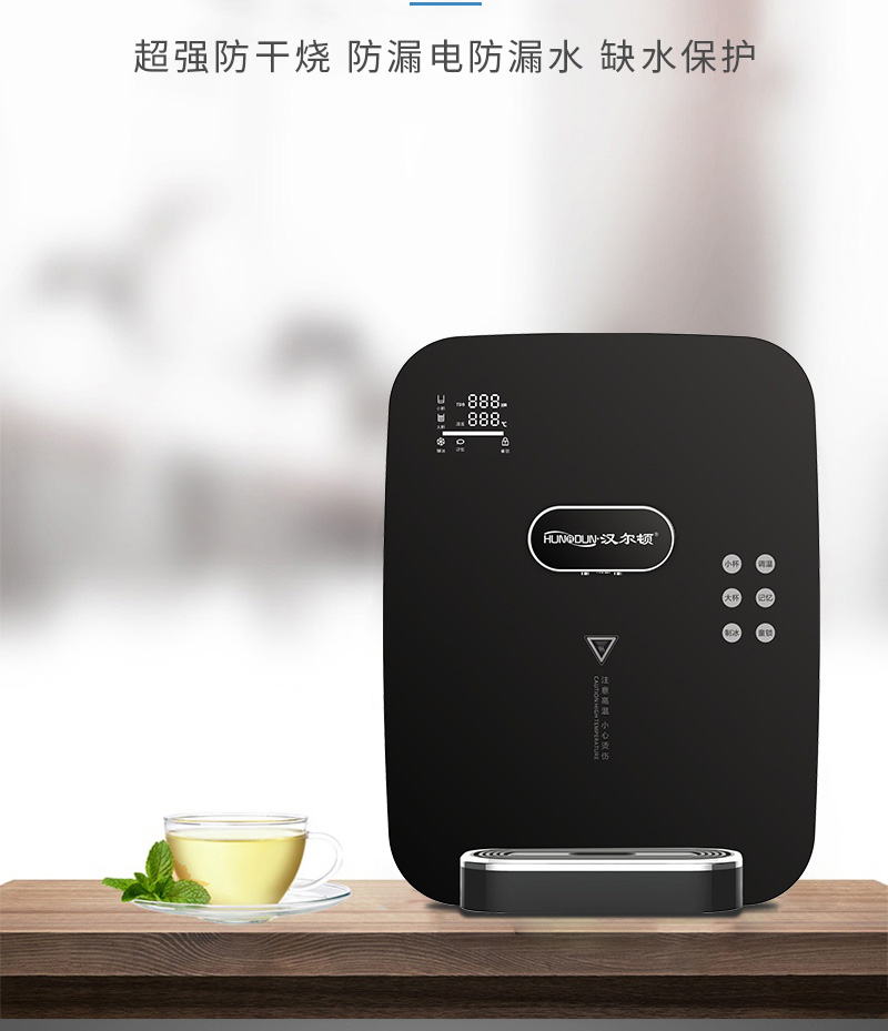 無內膽3秒即熱5檔溫度 NVH超靜音設計 無人值守定量出水超薄機身 超大液晶顯示屏 鋼化玻璃面板觸摸按鍵