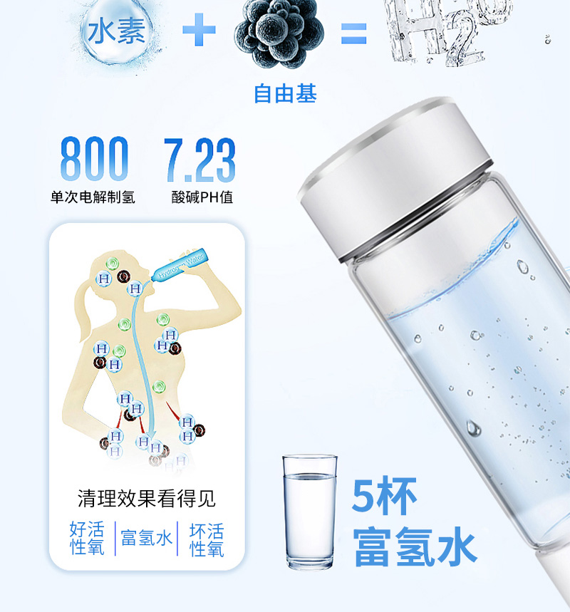 結(jié)構(gòu):便攜式氫氧分離水素杯,自帶清洗功能