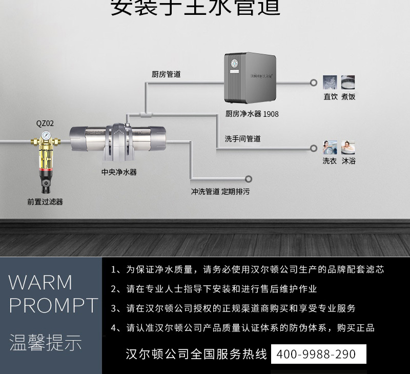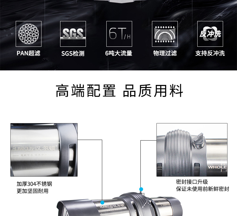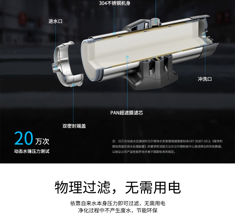 過濾工藝:前置食品級不銹鋼網(wǎng)+合金PVDF復(fù)合超濾膜+KDF