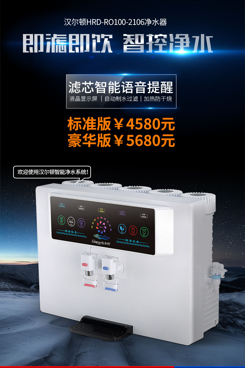 結構:分體式濾芯,帶LED液晶全電腦微控,智能語音播報