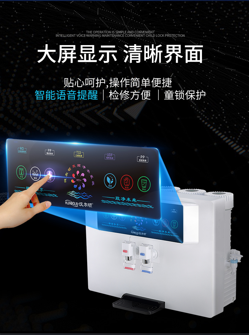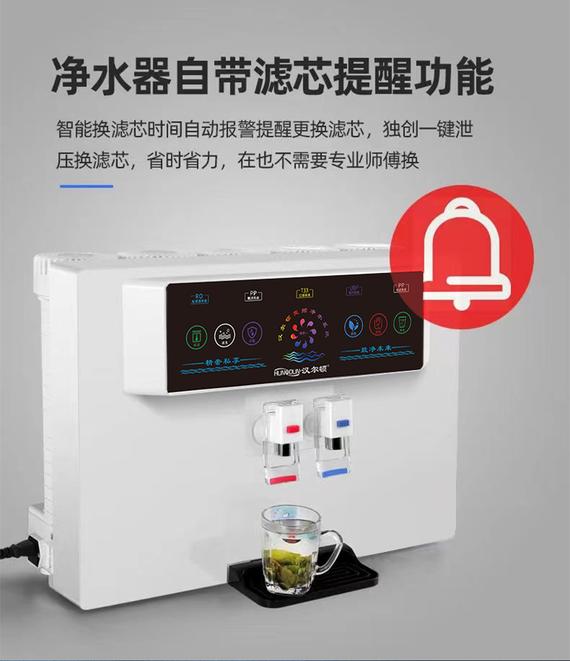 過濾工藝:初濾系統(tǒng)+吸附系統(tǒng)+直飲系統(tǒng)+反滲透系統(tǒng)+口感調(diào)節(jié)系統(tǒng)
